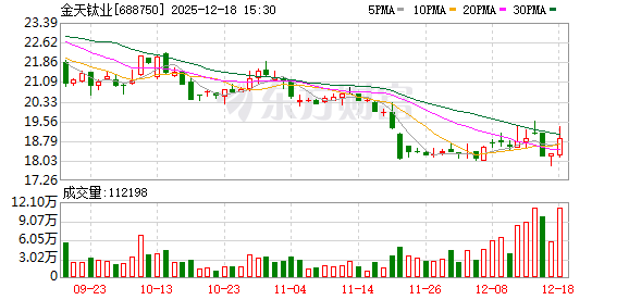 金天钛业12月18日大宗交易平台出现一笔成交,成交量100.00万股,成交金额1874.00万元,大宗交易成交价为18.74元,相对今日收盘价折价0.79%。该笔交易的买方营业部为中信建投证券股份有限公司总部,卖方营业部为机构专用。