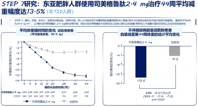 [1]Pan XF, et al. Lancet Diabetes Endocrinol 2021;9(6):373-392.[2]中国医师协会内分泌代谢科医师分会,内分泌代谢科肥胖诊疗联盟. 肠促胰素类减重药物临床应用专家共识(2025版)[J]. 中华糖尿病杂志,2025,17(08):950-970.[3]Rubino D, et al. JAMA. 2021 Apr 13;325(14):1414-1425.[4]Wadden TA, et al. JAMA. 2021 Apr 13;325(14):1403-1413.[5]Garvey WT, et al. Nat Med. 2022 Oct;28(10):2083-2091.[6]Ji L, et al. Diabetes Obes Metab. 2024 Oct;26(10):4694-4704.[7]Mu Y, et al. Lancet Diabetes Endocrinol. 2024 Mar;12(3):184-195.[8]Lincoff AM, et al. N Engl J Med. 2023 Nov 11.[9]Zhao Z et al 2025, American College of Cardiology (ACC.25), 29-31 March 2025[10]Wilson L, et al. Presented at the ESC Congress together with WCC;Madrid Span, August 29- September 1, 2025