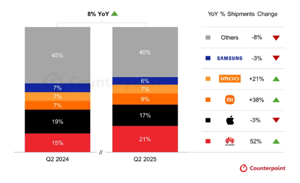 分析师Anshika Jain指出,华为在本季度表现尤为突出,全球出货量同比增长52%,首次超越苹果,登上全球智能手表出货量第一的位置。这一成绩得益于华为多元化的产品组合、在中国市场的强劲表现,以及其中高端产品具备竞争力的定价。